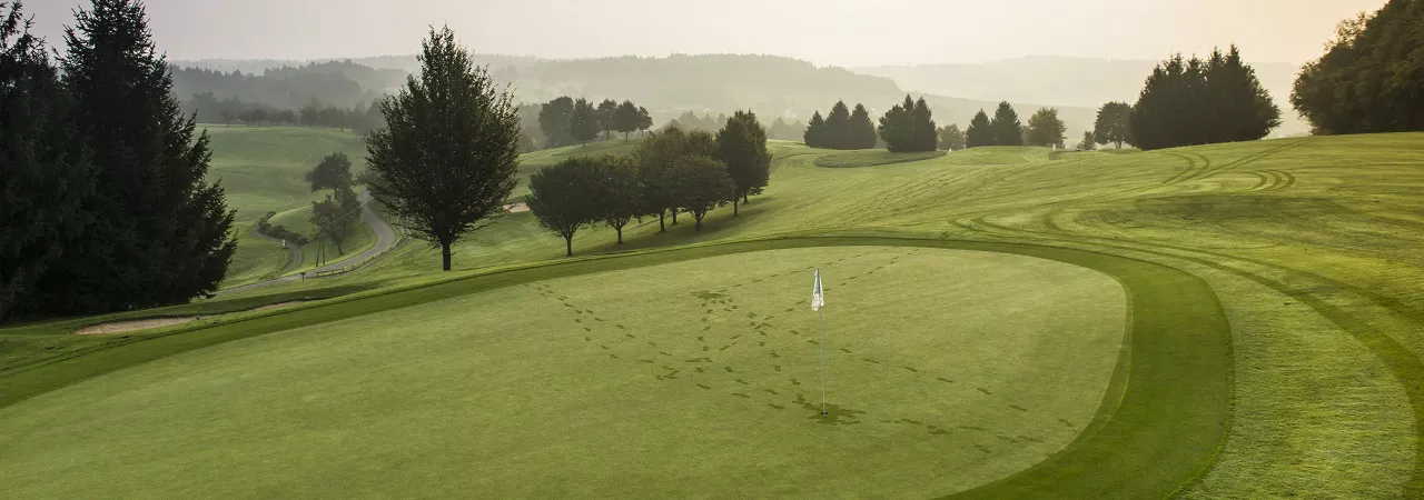 Die 18 Löcher führen in stetem Auf und Ab über ausgeprägte Anhöhen, Schräglagen, langgezogene An- und Abstiege und große Höhenunterschiede fordern sowohl sportliches Können als auch Kondition. Aber Lohn der Mühe sind neben Drives, die besonders weit fliegen, die schönsten Ausblicke im Golf Resort: Bei guter Wetterlage und klarer Sicht reicht der Blick vom Bayerischen Wald über Bad Griesbach und das Rottaler Hinterland bis hin zu den Alpen - ein fantastisches Panorama, das mit den sanften Hügeln und malerischen Grüntönen auch erklärt, warum das Rottal als „bayerische Toskana“ bezeichnet wird. | |