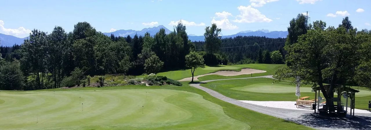 Die 18-Loch Anlage liegt wunderschön eingebettet, liebevoll gepflegt und in naturbelassener Landschaft mit herrlichen Aussichten auf die Karawanken. Die Platzbeschaffenheit mit gepflegten Grüns und Fairways lässt Golfer ins Schwärmen geraten. Beeindruckend ist das Loch 10 der Anlage, das auch schon mehrfach prämiert wurde. Ein Höhenunterschied vom Abschlag bis zum Grün von rund 70 Metern raubt einem beim Teeshot fast den Atem und ein langer Drive macht hier doppelt Spaß. Aber auch alle anderen Löcher bieten die Möglichkeit Golf vom Feinsten zu spielen und seine persönliche Herausforderung zu finden. | |