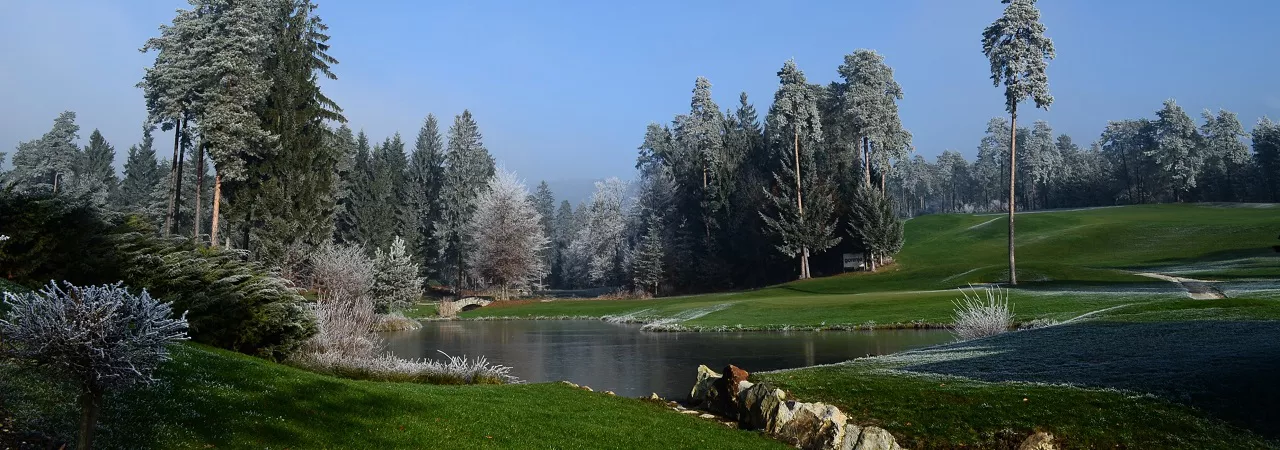 Abgesehen von der Herausforderung des hügeligen Platzes garantieren Ihnen der Blick über die Alpen und die unmittelbare Nähe des Arboretum Volčji Potok Naturparks einen unvergesslichen Golftag, den sie im Clubhaus am 9. Grün mit Aussicht auf einen See ausklingen lassen können.