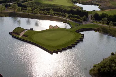 Ein Inselgrün in der Form eines Keilerkopfs auf dem Niedersachsen Course gilt als eines der bekanntesten Golflöcher Deutschlands, wenn nicht sogar in Europa.