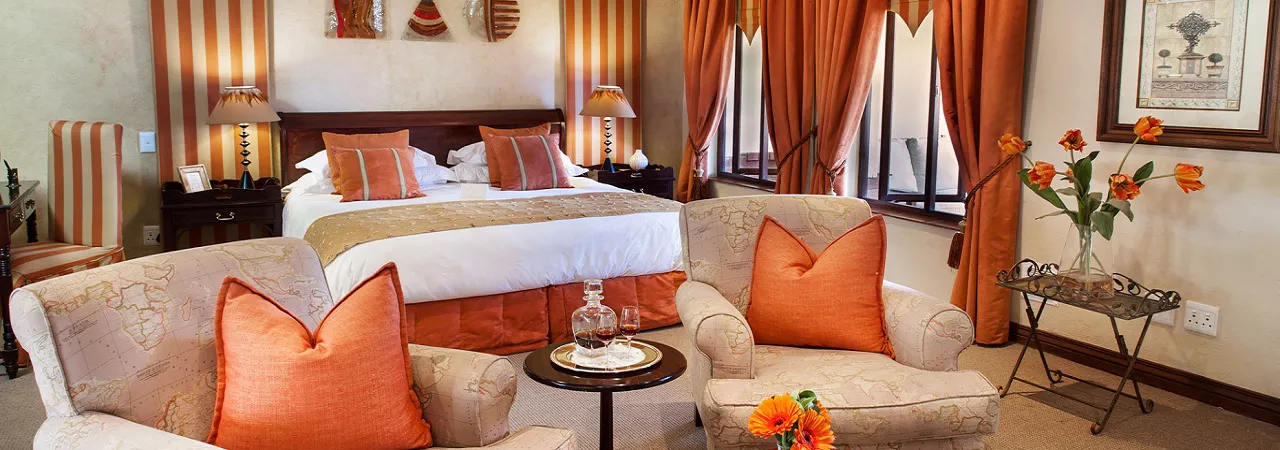 Alle Zimmer verfügen über eine private Veranda oder einen Balkon mit herrlichem Blick über den Golfplatz. Sie sind individuell ausgestattet mit Kingsize-Betten - zwei Einzelbetten können angefordert werden. Die Badezimmer sind alle mit eigenem Bad mit separater Dusche und Bädern, beheizte Handtuchhalter und luxuriösen Pflegeprodukten. Alle Zimmer sind mit DSTV, Film Play ausgestattet, Telefon, Minibar mit Snacks, Klimaanlage, Heizung, Kaffee- und Teekocher, Safe, Haartrockner und Bademänteln. | |